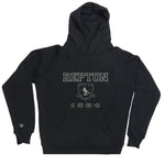 Repton Silver Black Hooded Sweatshirt. Soft Poly / Cotton with Silver finish Repton print. Machine Wash.